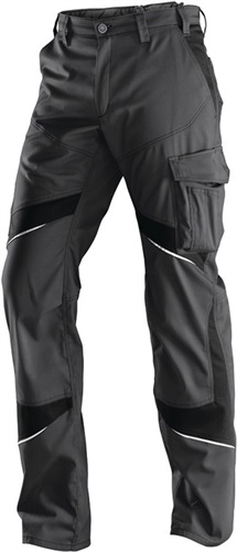 90% Nylon / 10% Elastan, ca. 260 g/m² · 4-Wege-Stretch, sehr strapazierfähig, bequem und weich · wasserabweisend, schmutzabweisend, atmungsaktiv und schnelltrocknend · zwei große Fronttaschen · elastischer Bund mit innovativem, versenkbarem Verstellsystem · hochgezogener Lendenschutz · Reflexprofile vorne und hinten sowie rotes Reflexband an der hinteren Gürtelschlaufe · multifunktionale Seitentasche für Werkzeug mit herausziehbarem Ausweisfach · zwei Gesäßtaschen, eine mit Patte und eine mit Sicherheitsklettverschluss · zwei Kniepolstertaschen mit einfachem Einschub und Stoßborte auf Anfrage lieferbare Größen: S-5XL