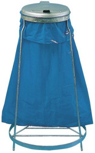 robustes, schlagfestes Stahlrohrgestell, Oberfläche galvanisch verzinkt · Kunststoffdeckel eckig mit Klemmring zur Sackbefestigung
