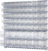 bestehend aus: Schlitzplatte, Stahlblech enzianblau, RAL 5010 und Lagersichtkästen, inkl. Etiketten · Art. Nr. 9000 428 240: B 500 x H 450 x T 250 mm, Art. Nr. 9000 428 241: B 1000 x H 450 x T 250 mm Lieferumfang: 1 Schlitzplatte, 24 Lagersichtkästen Größe 7, inkl. Etiketten, 8 Lagersichtkästen Größe 8 inkl. Etiketten