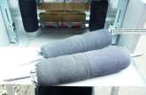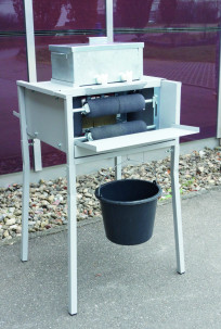 "Farbe" wird in den verzinkten Behälter oben eingefüllt.