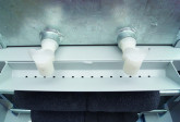 Dosierhähne erlauben die Regulierung des Materialflusses auf die darunter angebrachten Walzen.