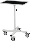 Profilstahl-Rohrkonstruktion, pulverbeschichtet · Stahlblechplattform mit 20 mm hohem allseitigen Rand · Höhenverstellung von Hand im Raster von 25 mm · sichere Arretierung · TPE-Bereifung · 4 Lenkrollen, davon zwei mit Feststeller · . . .