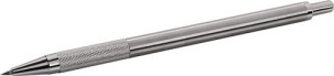 Kugelschreiberform · präzise, stabile Metallausführung · automatisch ein- und ausdrückbare HM-Spitze · 12 mm nachschleifbar · mit gerändeltem Griff und Clip ·