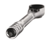 (Zyklop Mini Knarre) · 6,3 mm (1/4")-Bit-Aufnahme direkt im Knarrenkopf zum Arbeiten auf engstem Raum · geeignet für Bits mit 6,3 mm (1/4")-Außensechskantantrieb nach DIN 3126-C 6,3 und E 6,3 (ISO 1173) · mit Adapter auch geeignet für 6,3 mm (1/4")-Nüsse · Recht-/Linksumschaltung · gesenkgeschmiedete Vollstahlausführung · übertragbares Drehmoment über 65 N.m · kleiner Rückschwenkwinkel (feinverzahnt) · ergonomischer Kraftformgriff