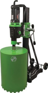 Nassbohren in armierten Beton, Naturstein und Asphalt · Sanftanlauf, Temperatur- und Überlastabschaltung, Überlastanzeige, Drehzahlkonstanthaltung · Serviceanzeige · Ölbadgetriebe · mechanische Sicherheitskupplung · integrierte Libellen auf Maschine und Zusatzhandgriff · Bohrsäule schwenkbar bis 45° · werkzeugloses Einsetzen des Motor in den Bohrständer Weitere technische Eigenschaften: · Netzspannung: 230 V / 50-60 Hz · Hub: 620mm Lieferumfang: Kernbohrmaschine EBM 352/3, Bohrständer BST 352 V