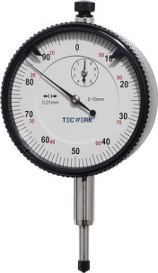 Abmessungen nach DIN EN ISO 463 · Einspannschaft (Ø 8 mm h6) und Messbolzen aus nichtrostendem Stahl · verstellbare Toleranzmarken · mit 2 Zeigern · Außenring-Ø 58 mm · Weitere technische Eigenschaften 1 Zeigerumdrehung: 1,0mm